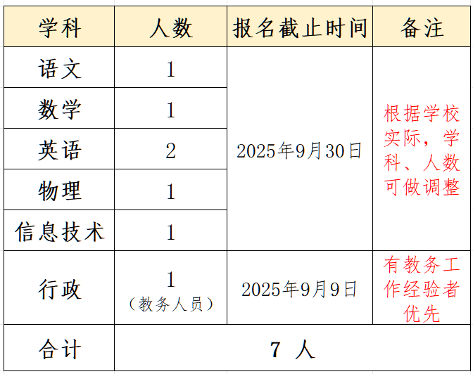 01、招聘学科及人数