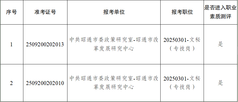 附件:1. 昭通市改革发展研究中心2025年公开选调工作人员职业素质测评人员名单