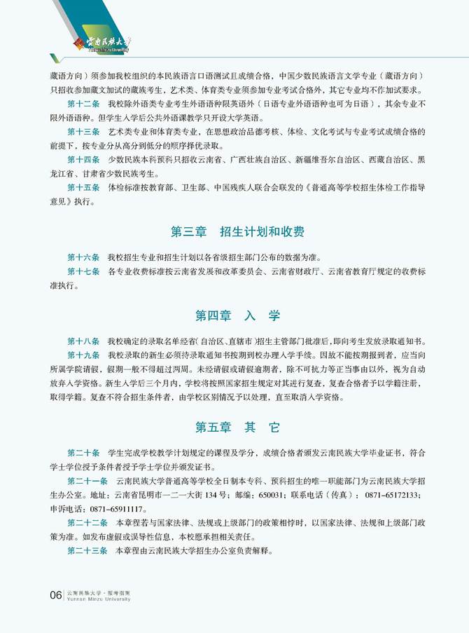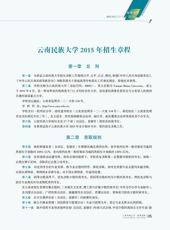 云南民族大学2015年招生章程