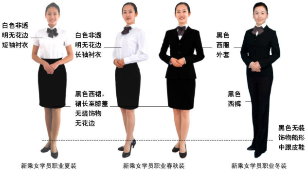 注意:必须严格按照新乘着装规定穿着新乘职业装方可报到,否则培训部将不予接受。