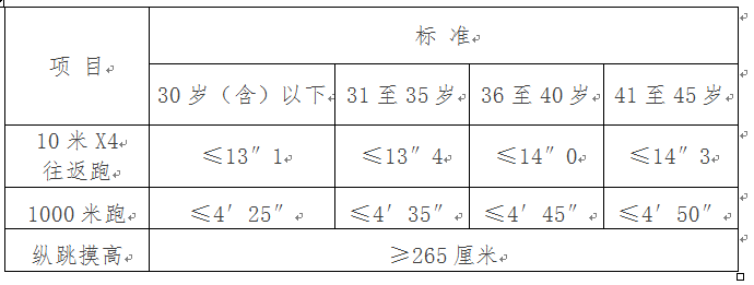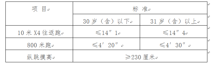 体能测评按照公安部《关于印发公安机关录用人民警察体能测评项目和标准(暂行)的通知》及其所附标准开展。
