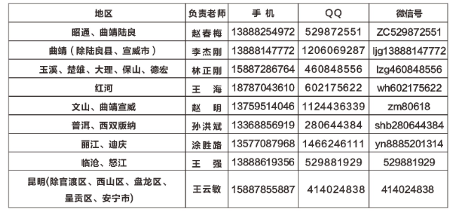 云南工程职业学院2018年云南省各地州三年制大专招生负责人联系方式