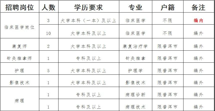 墨江哈尼族自治县人民医院2021年招聘公告