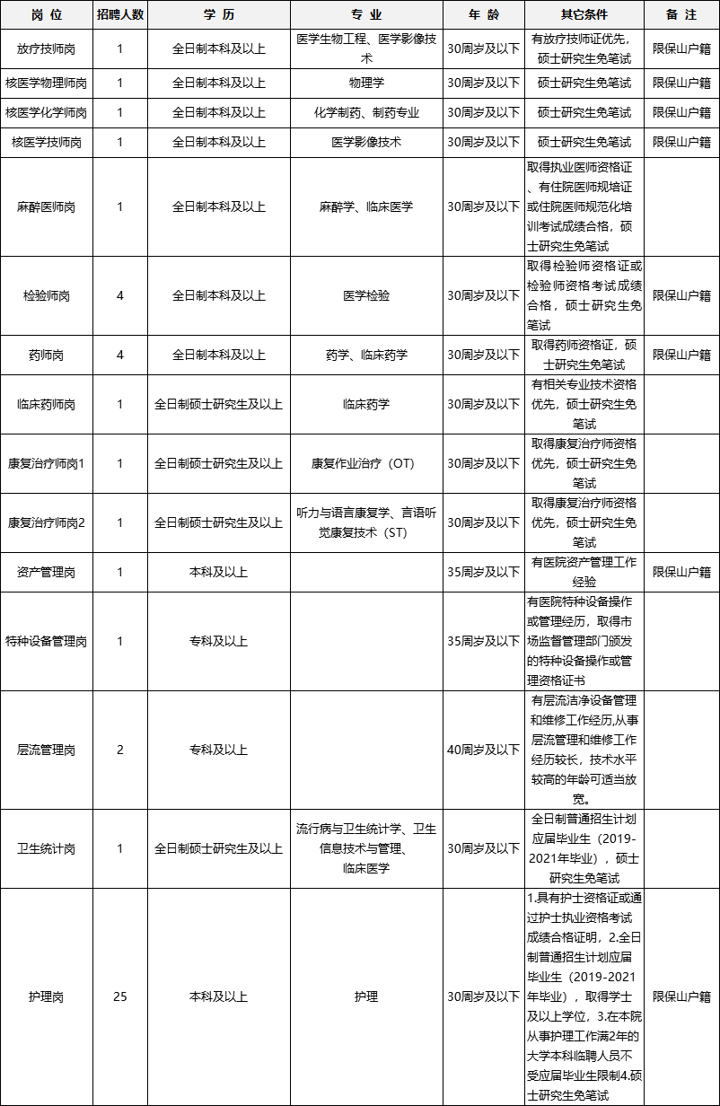 保山市人民医院因业务发展和工作需要,现面向社会公开招聘编制外合同制工作人员。现将招聘事宜公示如下: