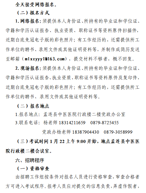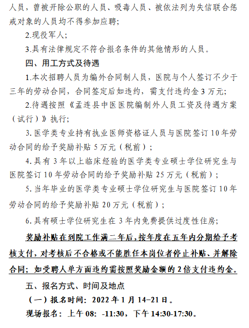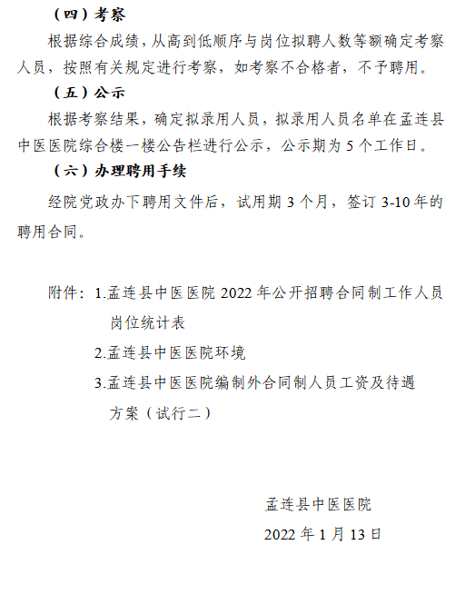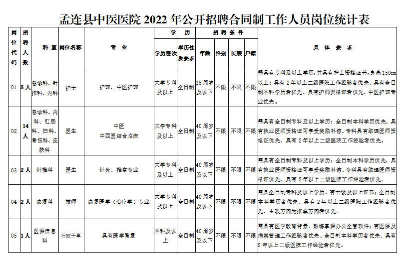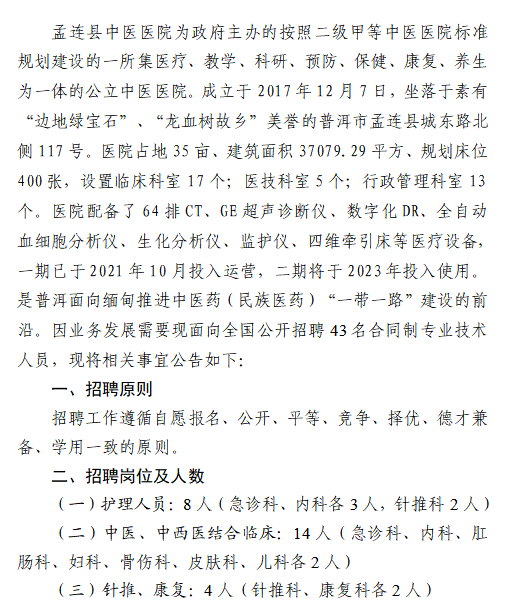 2022年普洱市孟连县中医医院招聘合同制工作人员公告