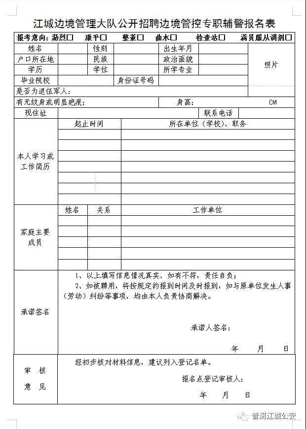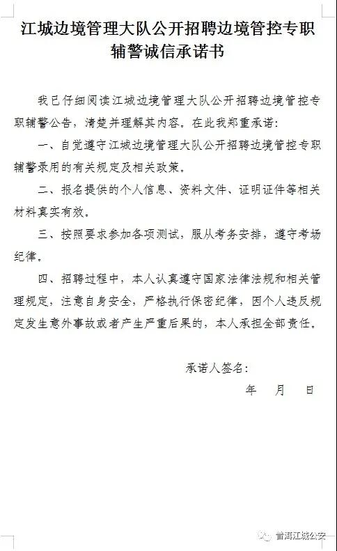 2022年普洱市江城边境管理大队边境管控专职辅警招聘公告