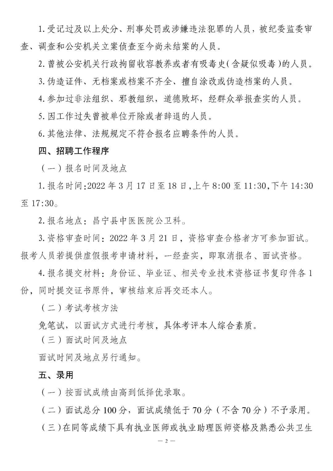 昌宁县中医医院2022年田园镇社区卫生所乡村医生招聘公告