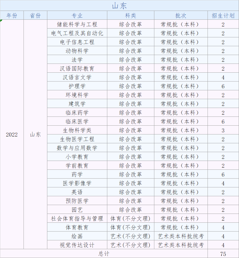 大理大学2022年普通本科分省分专业招生计划(山东)
