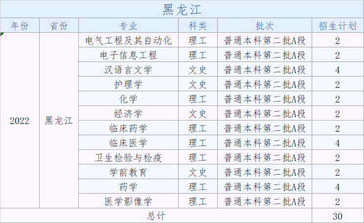 大理大学2022年普通本科分省分专业招生计划(黑龙江)