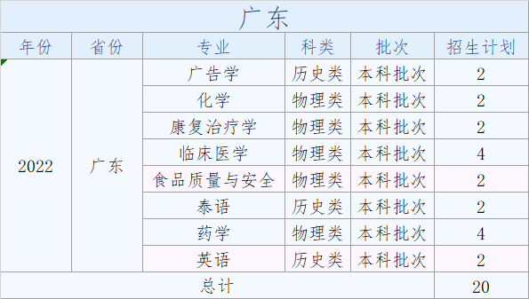 大理大学2022年普通本科分省分专业招生计划(广东)