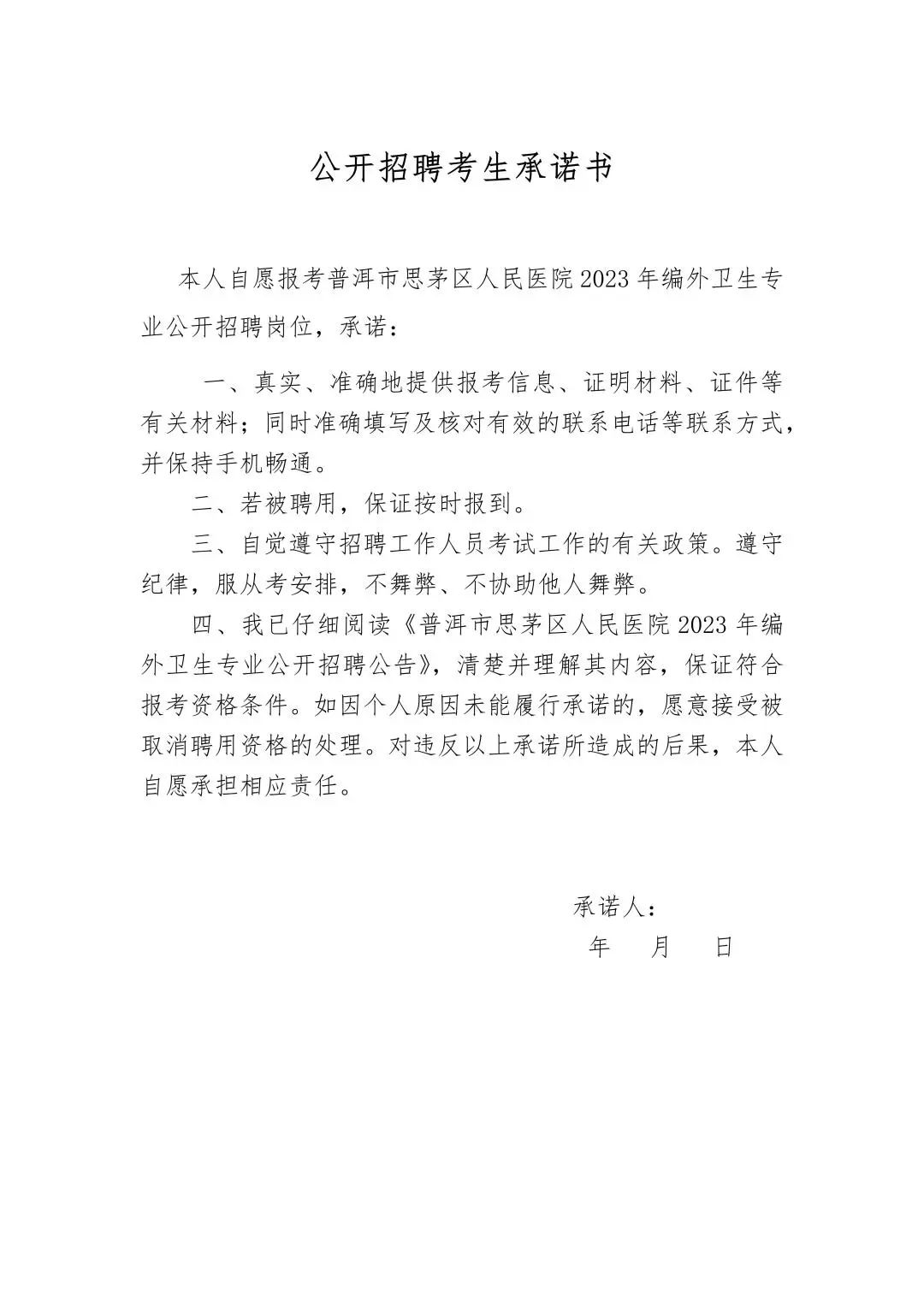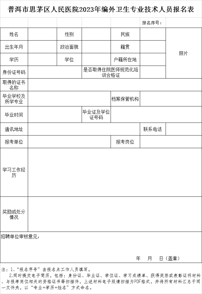 1.《2023年普洱市思茅区人民医院招聘编外卫生专业技术人员报名表》